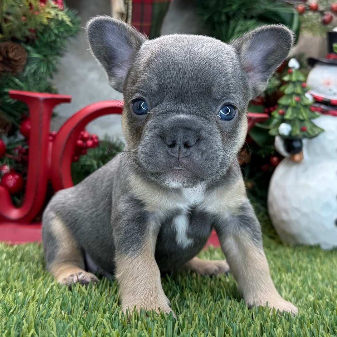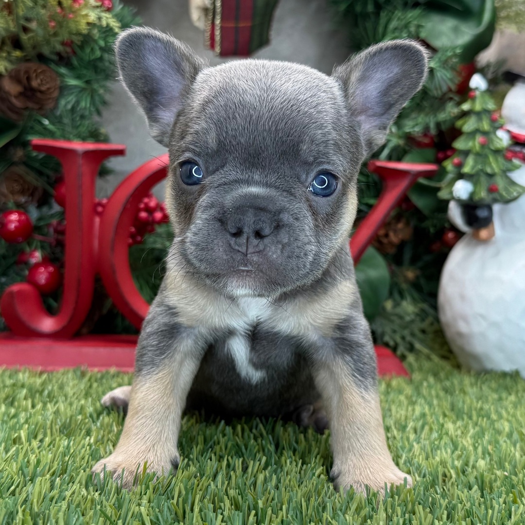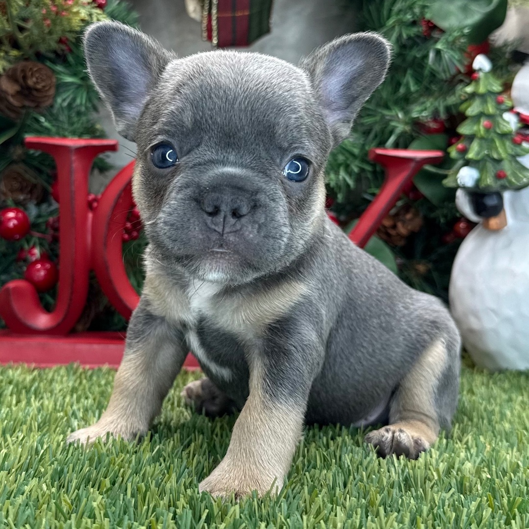 Hi, I’m Bishop! I’m an 8-week-old male French Bulldog with a beautiful blue & tan coat, born on October 15, which makes me a Libra pup. I am ready now to plan my trip to my forever family. Once I reach my adult size, I’m expected to weigh between 20–35 lbs. I’m AKC registered. My puppy love is ready to brighten your every day.
