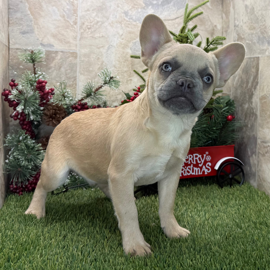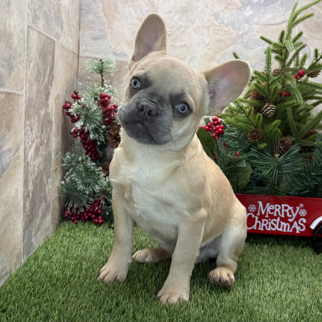 Hi, I’m Salmon! I’m a 23-week-old male French Bulldog with a beautiful fawn coat, born on July 7, which makes me a Cancer pup. I am ready now to plan my trip to my forever family. Once I reach my adult size, I’m expected to weigh between 22–30 lbs. I’m AKC registered. I’m all ready to be your new best friend and bring joy to your days.